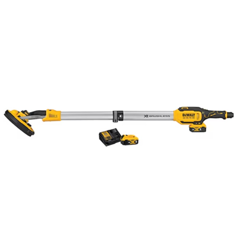 The DCE800 Cordless Drywall Sander features increased runtime, durability, and speed consistency with a brushless motor, quick dust extractor connection with The Airlock(tm) connection for use with DEWALT dust extractors, and additional control with a variable speed dial. The DCE800 works well in large and tight workspaces with a telescoping shaft and articulating head. To efficiently remove potentially harmful dust in the workplace, the tool is equipped with Wireless Tool Control(tm) for pairing with compatible DEWALT dust extractors.