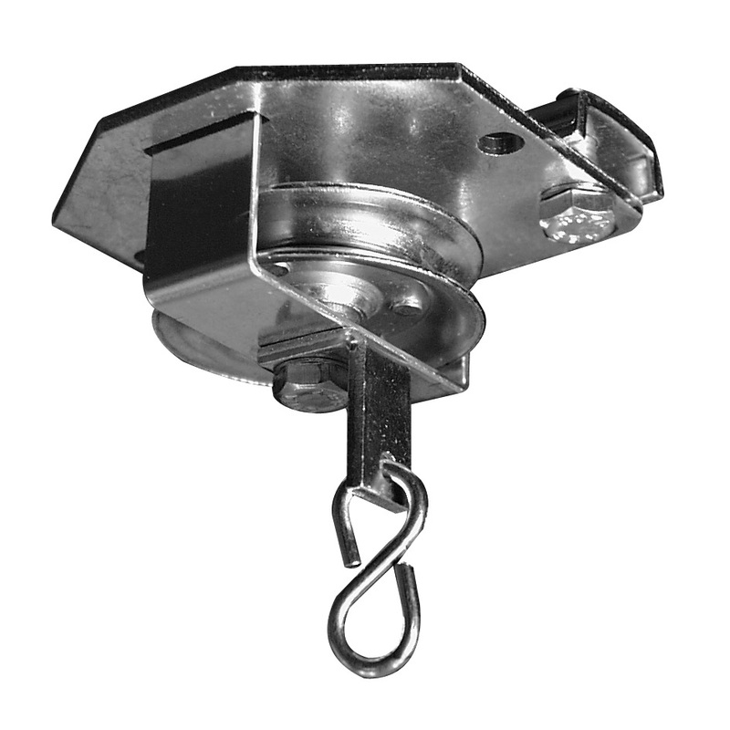 Equipped with 1 oil-impregnated sleeve bearing steel wheel. Steel block, anchorable to any position under track without drilling.Pulley width: Approximately 3″.