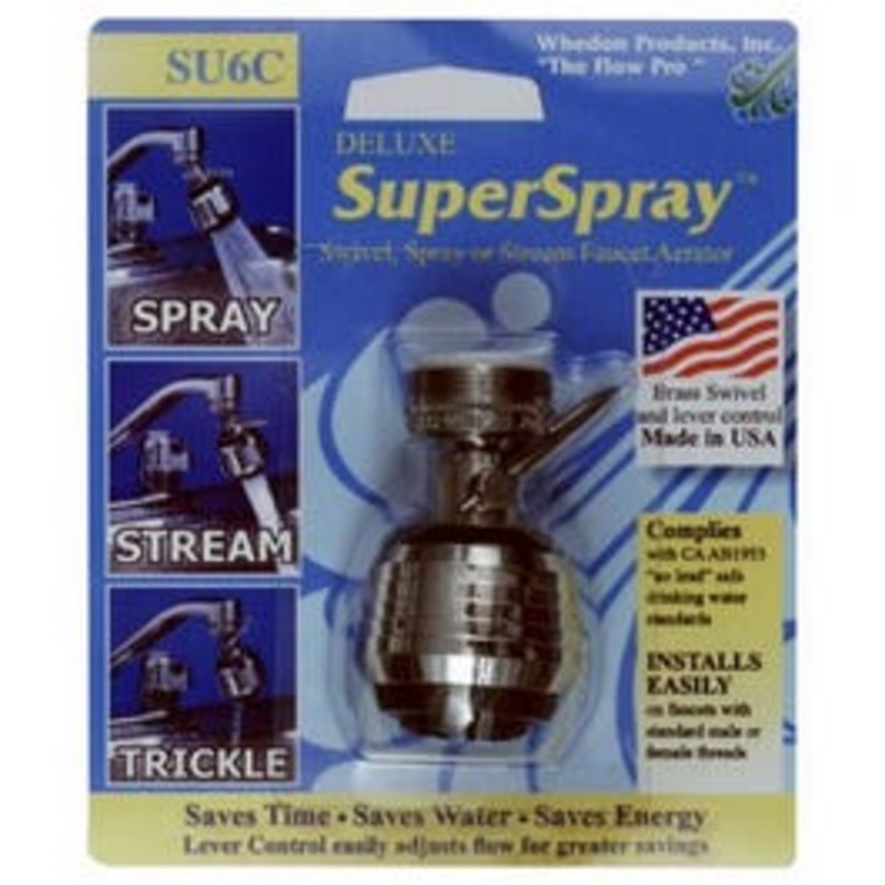 Deluxe SuperSpray Spray & Stream, Swivel Aerator, With Lever Control, Use For Kitchen Faucets, Installs Easily With Dual Threads 15/16 x 27 Male & 55/64 x 27 Female Threads, Chrome Plated Swivel & Lever Control, Swivels For Greater Sink Coverage, Lever Control Trickle Valve Saves Water, Energy & Money, Made In USA.
