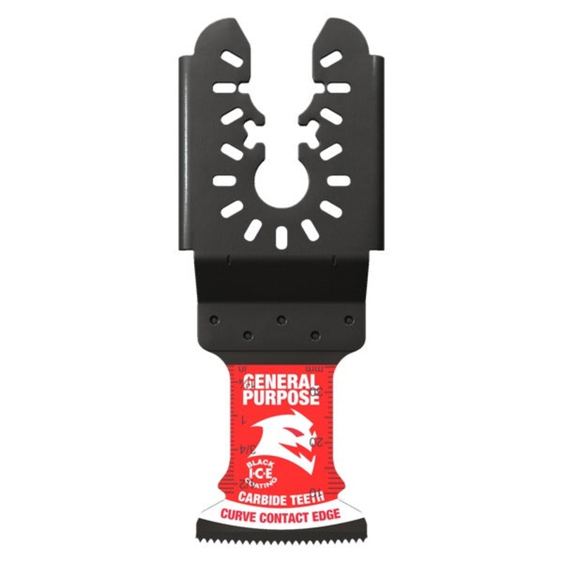 Diablos universal fit carbide oscillating blades feature application specific designs that deliver extreme durability and superior cutting life in general purpose cuts: nail-embedded wood, clean wood, metal and plastics. High-performance carbide teeth deliver an unmatched up to 50X longer cutting life versus standard bi-metal blades. Curve contact edge creates a pilot for precise, clean plunge cuts with less vibration. An optimized blade design and Black I.C.E. (Industrial Cooling Element) keeps the teeth cool and build up free for fast, clean cuts. The blades universal fit, adapter-free design easily attaches to most tools, with the exception of Starlock tools.