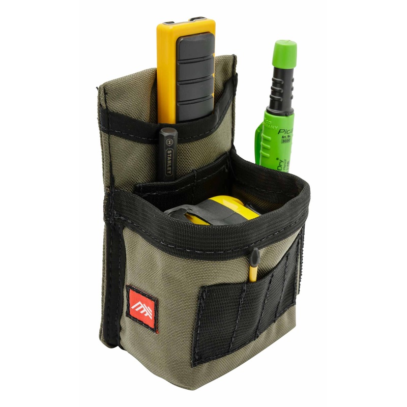 DescriptionNamed after illustrious craftsman, Gary Katz, the GK1 is the perfect low-profile multi-use pouch. The main pocket is perfect for fasteners or glue bottle and is large enough to hold a 35 tape. Three internal tool slots, four bit index and webbin