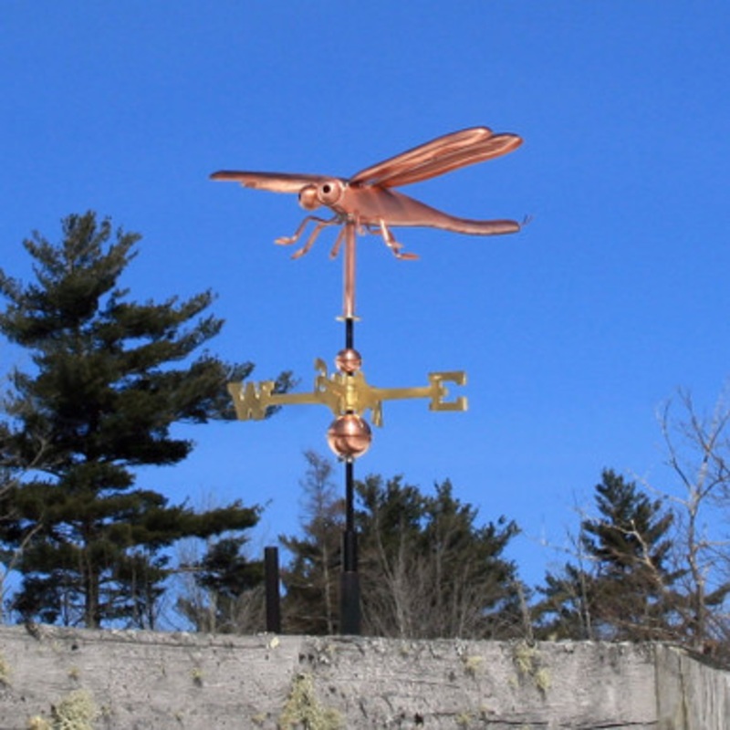 Dragonfly Weathervane Made in USA Elevate your outdoor space with the stunning Dragonfly Weathervane, a breathtaking fusion of artistry and functionality that embodies the essence of American craftsmanship. This majestic 3D copper weathervane is not just a
