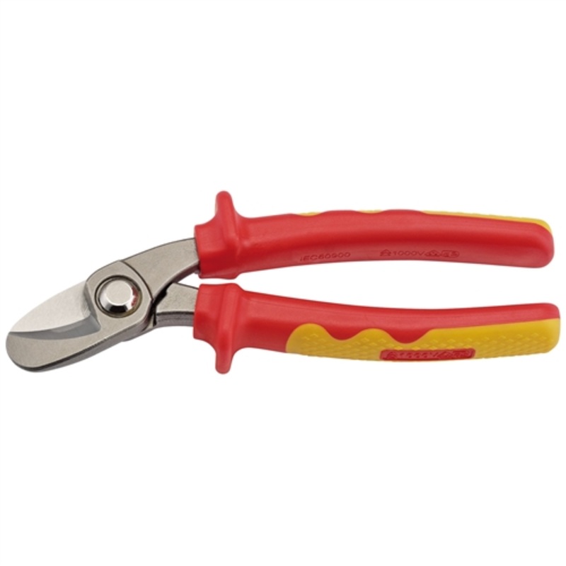Expert Quality, 180mm cable shear, manufactured from chrome vanadium steel that’s hardened and tempered for extra strength. The induction hardened and finely ground cutting edges are finished with a protective lacquer for corrosion protection. Fitted to heavy duty, fully insulated soft grip handles, tested to 10,000V for safe 1000V AC or 1500V DC live line working.