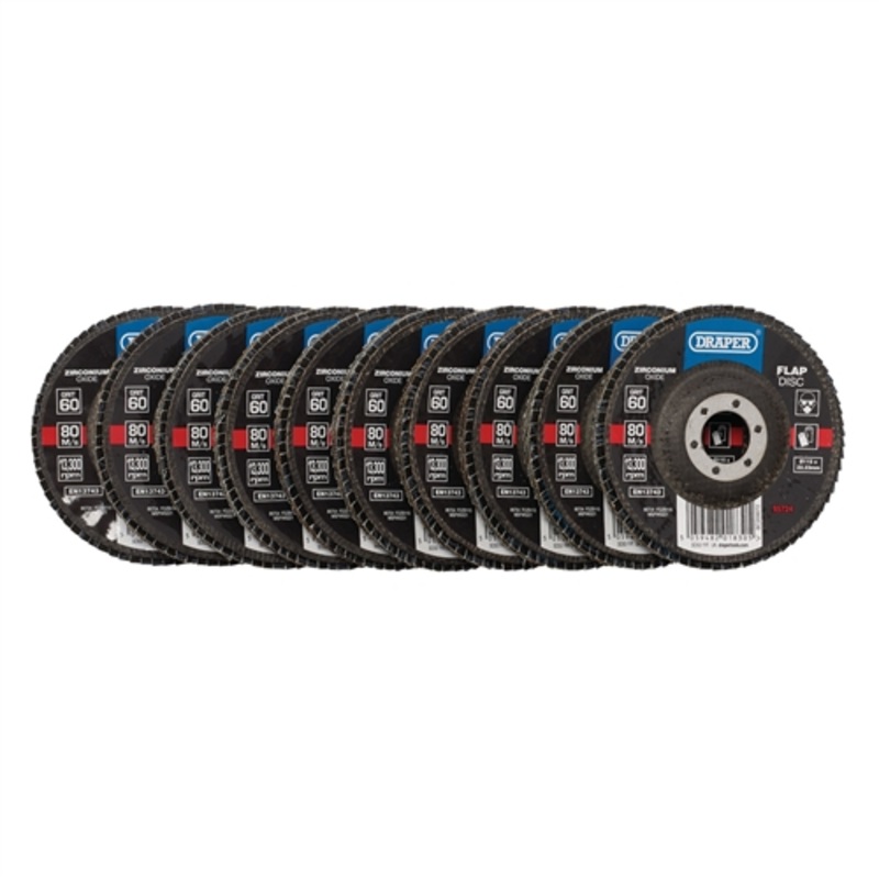 Draper Zirconium Oxide Flap Discs, 115 x 22.23mm, 60 Grit (Pack of 10)