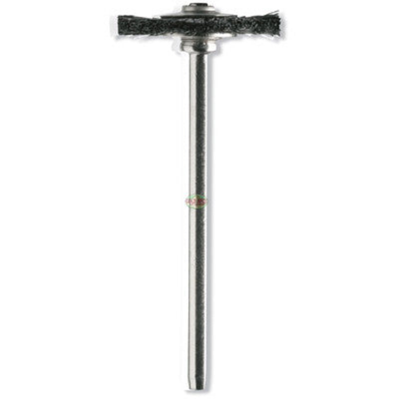 Use for light deburring, cleaning and polishing of silverware, jewelry and other precious metals. Can be used with polishing compound.-Ideal for general cleaning and polishing-especially in hard-to-reach places, such as slotted surfaces-Long-wearing nylon bristles-Can also be used for cleaning hard plastic or aluminum such as graphite golf clubs or aluminum wheels-Can be used with polishing compound-User Tips–For best results, insert the accessory bit all the way into the tool and then back it out slightly before tightening down. This provides plenty of shank for the collet or chuck to hold onto the bit.-Keep a light touch, letting the tips of the brush do the work. Too much pressure can break the bristles.-Before using on a material, allow the tool with brush to run at operating speed for at least one minute to discharge any loose bristles. Make sure no one stands in front of or in line with the brush.-The bristle brush can be used with polishing compound.-Do not run in excess of 15,000 rpm. Therefore, do not use with a Single-Speed MultiPro Rotary Tool or a Heavy-Duty Flex-Shaft Tool unless you use the #221 Foot Speed Control.