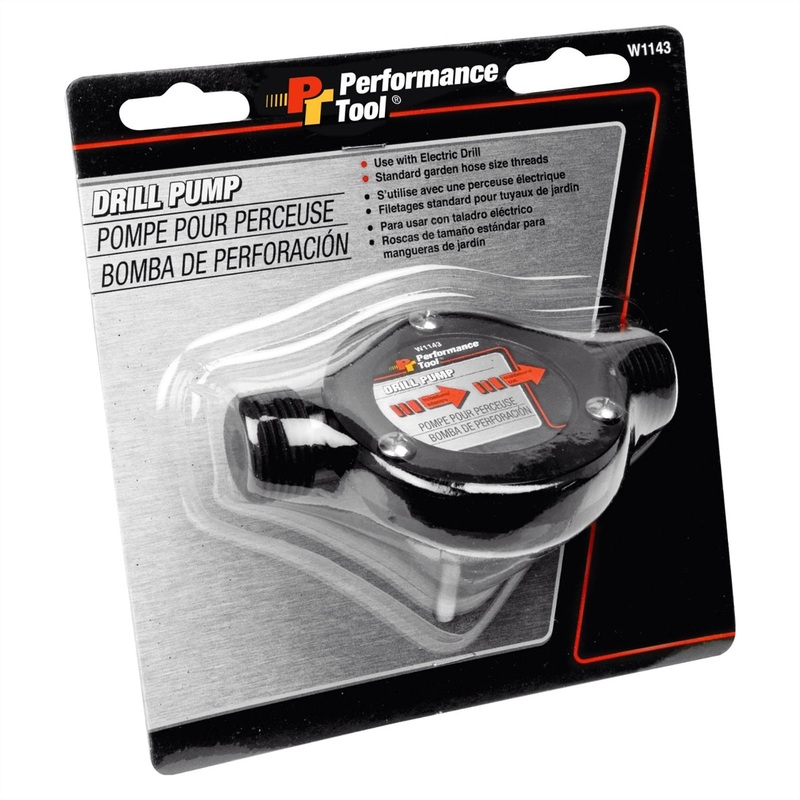 Features and Benefits of Drill Pump Self priming pump For use with an electric drill Standard garden hose size threads WARNING: Cancer and Reproductive Harm - www.P65Warnings.ca.gov