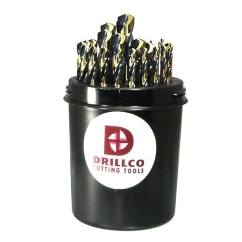 Sizes: Jobber Drill SetsMaterial: High Speed SteelFinish/Coating: Black & GoldSet includes 29 pieces