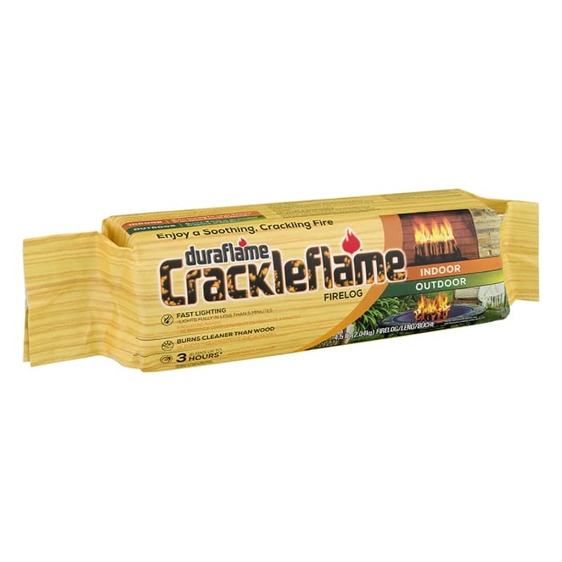 Duraflame Crackleflame firelogs use recycled and renewable wood sawdust and agricultural fibers, saving valuable natural resources. The renewable fibers are mixed with blends of wax and other combustible, renewable materials, including a natural seed for the crackling sounds.