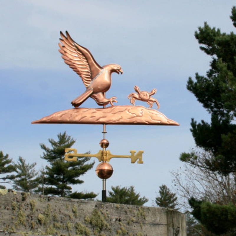 Eagle Weathervane - Made in USA Elevate your outdoor space with the stunning Eagle Attacking a Crab Weathervane, a true masterpiece of American craftsmanship! This 3D copper weathervane isnt just a whimsical addition to your shed, garage, or barn; its a bo
