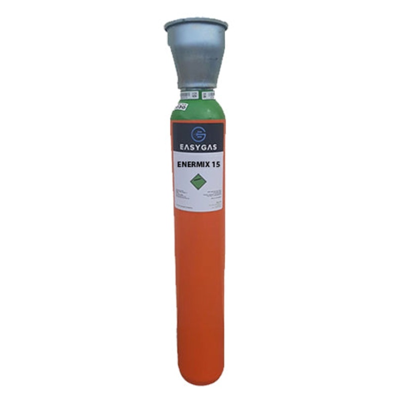 EasyGasEnermix 15 is a unique blend of Argon, Carbon Dioxide and Oxygen gas mix (often referred to as a tri-mix or an argon shield); it is very easy to use and provides a sound weld at very little cost. This gas mix offers a great number of benefits over using straight carbon dioxide for welding; it decreases the chances of porosity, welding spatter and oxidation.