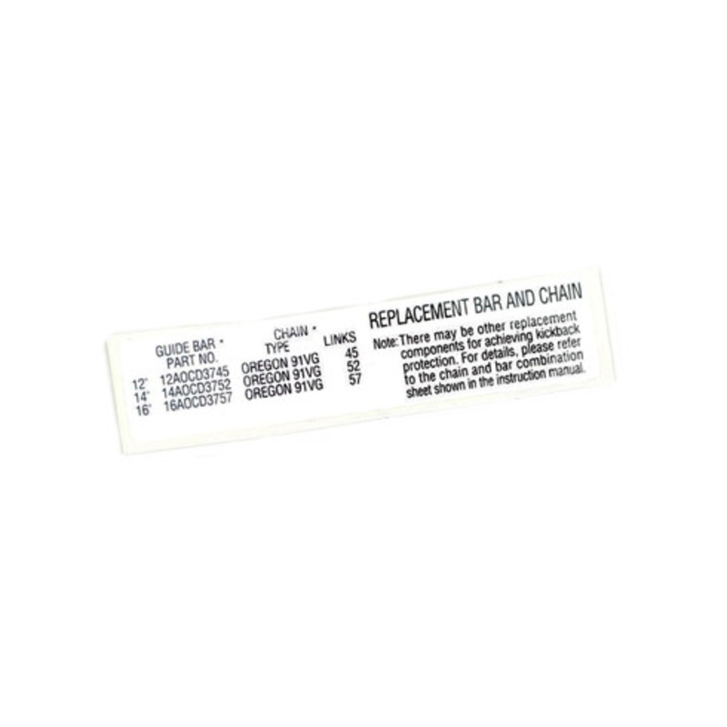 Experience exceptional quality with ECHO products designed for optimal performance in lawn mowing equipment. This LABEL BAR & CHAIN ensures your tools operate at their best, providing reliable results every time. Dont miss out on our unbeatable pricesshop now and enjoy the best value in the market for your replacement needs.