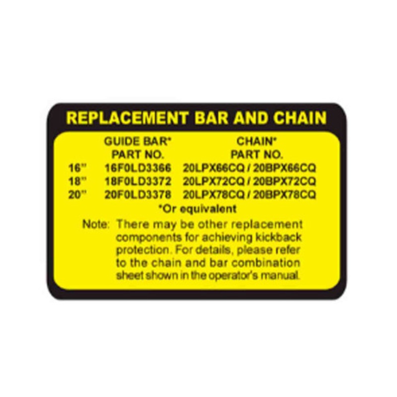 X524003551 LABEL BAR & CHAIN Manual and Additional Information