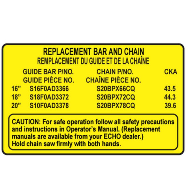 X524005550 ECHO LABEL BAR AND CHAINExperience exceptional quality with ECHO's replacement parts, designed to enhance the performance of your lawn mowing equipment. Our store offers the best price in the market, ensuring you get top-notch products without b