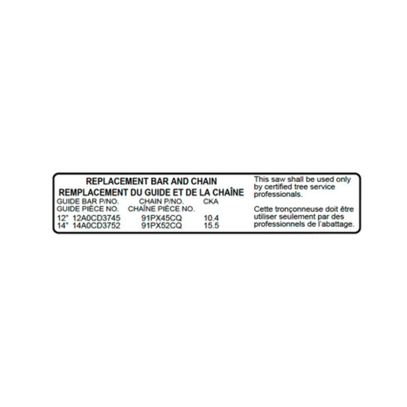 X532003540 LABEL BAR & CHAIN Manual and Additional Information