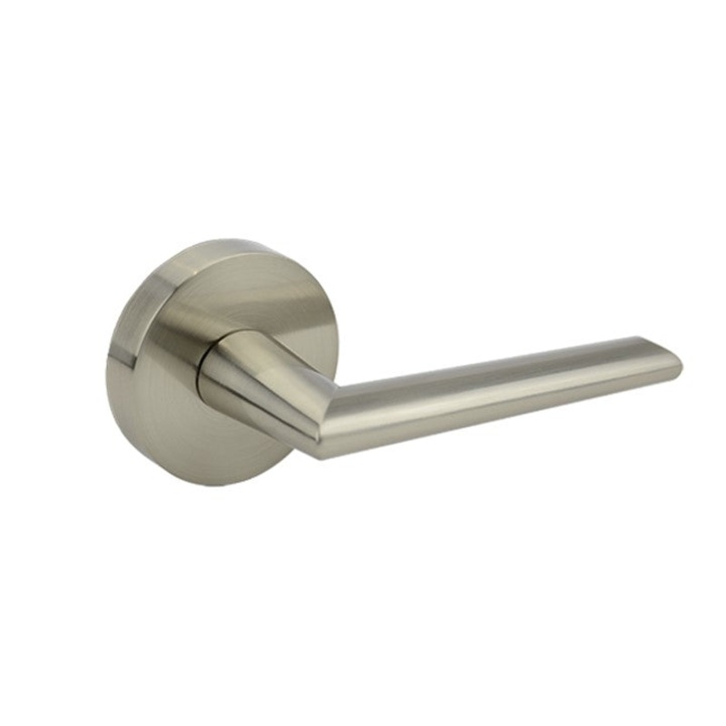65mm round backing plate with a solid, flawlessly designed oval-shaped handleSolid zinc alloy construction with a satin nickel finish (looks like brushed stainless steel finish)The price for a SINGLE handleSuitable for both left and right-hand opening door