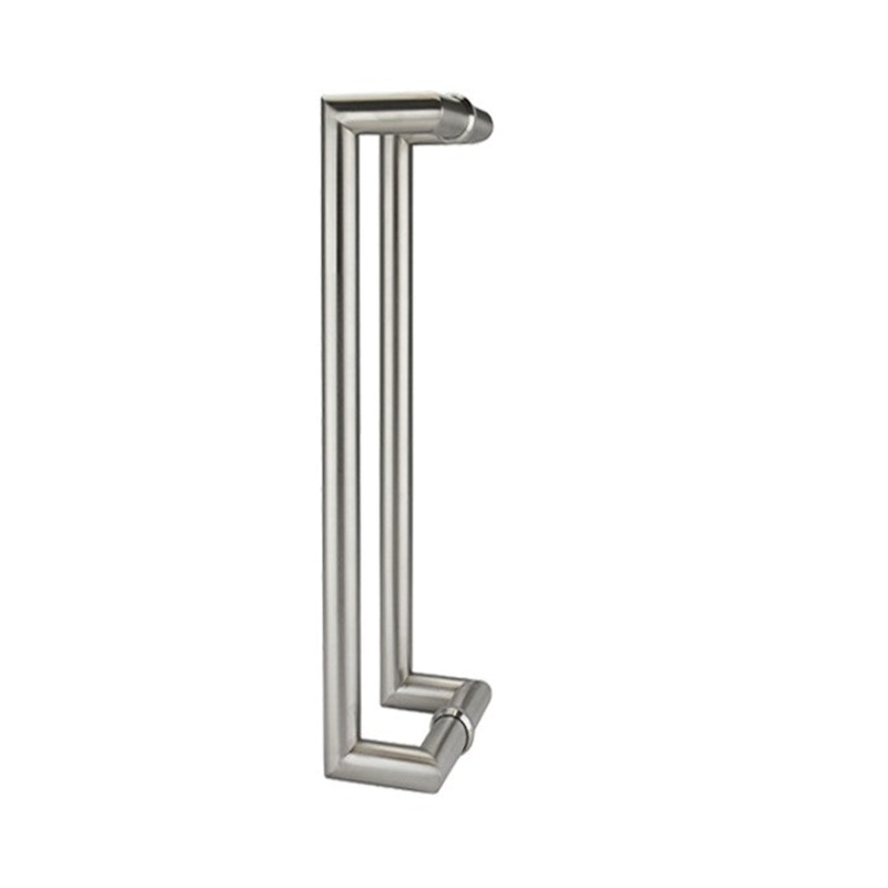 DescriptionA solid, U-shaped door pull handle 600mmA pair of Stella Series round U-shaped door pulls (back-to-back)Made of Premium Grade 304 stainless steel with round handleBrushed stainless steel finish. Also available in matt black finishOffset from the