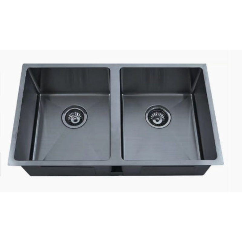 Coomera Above/Undermount Double Bowl 760mm - Matt BlackDouble BowlThickness: 1.2mm;Abovemount / UndermountBowl size: 340 x 400mm X2AIS 304 18/8 grade stainless steel;Mounting clips & basket waste incl.15 Years Warranty