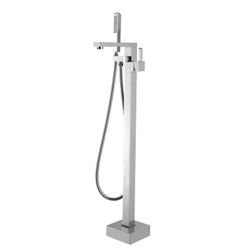 Eva Free Standing Floor Mixer Bath Spout & Hand Held Shower Combo -Brushed NickelSquareMultifunction Floor Mixer & Bath Spout SetWatermarkCertifiedSolid BrassConstructionBrass Diverter1.5m Double Hooked Stainless steel hoseABSHand Shower5 Years Warranty