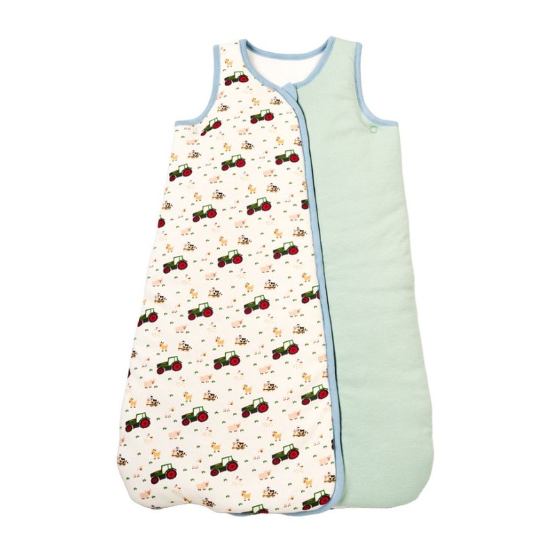 Made from 100% breathable cotton with a soft polyester filling, the sleeping bag provides gentle th without restricting movement. A full-length zip allows for quick dressing and easy nighttime changes, while adjustable press studs on the sides create a snug, customizable fit.