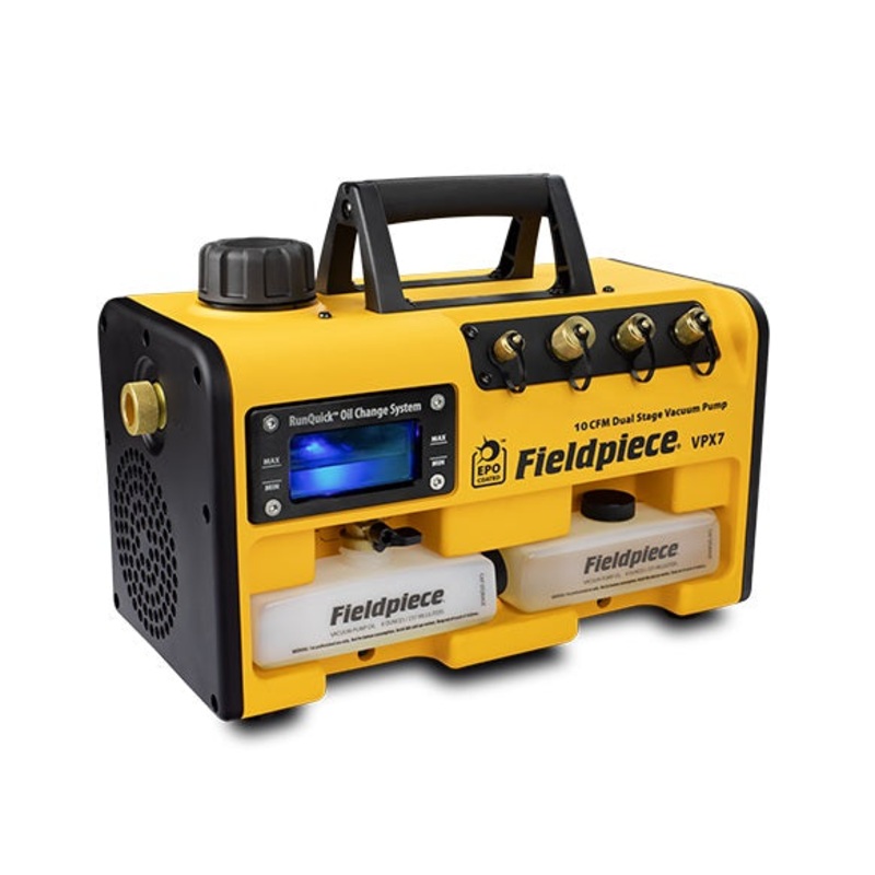 FIELDPIECE280 L/min Refrigeration Vacuum PumpVPX7This FIELDPIECEVPX7, Refrigeration Vacuum Pump(280 L/min) allows you to clearly view your pump oil through the huge oil reservoir window to see its condition. And when it's time for an oil change, it's way q