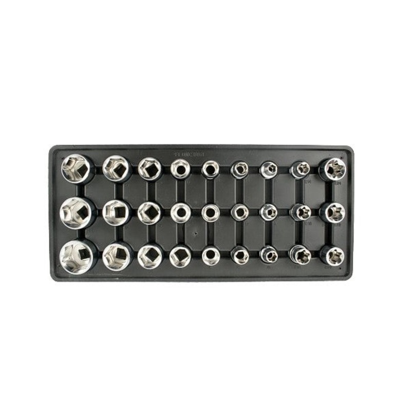 - The set consists of ” drive sockets in sizes 8mm to 32mm and TORX sockets E14 to E24