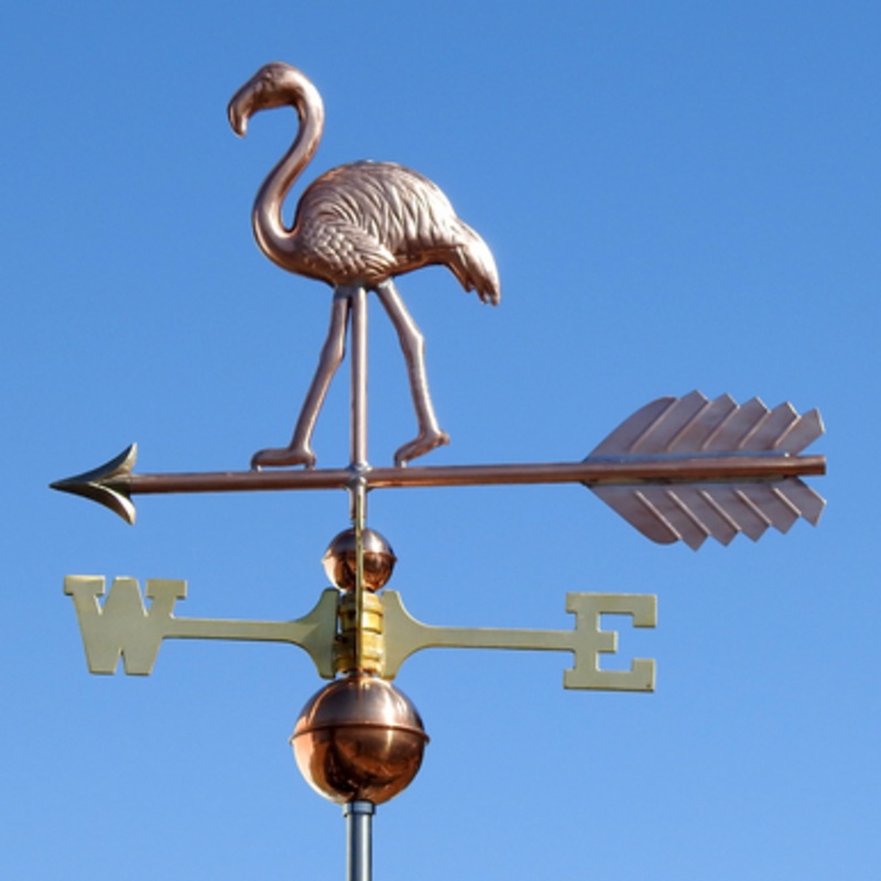 Elevate your outdoor space with our exquisite handmade copper flamingo weathervane, a stunning blend of functionality and artistry that embodies the essence of American craftsmanship. This heavy-duty piece is meticulously crafted to withstand the fiercest of winds, making it a reliable companion for your shed, barn, garage, or garden decor. Each flamingo weathervane is not just a tool for gauging the wind direction; its a statement piece that adds a whimsical touch to any ridge line or man cave.