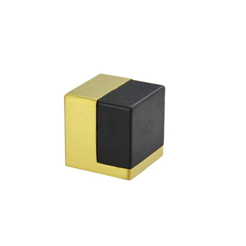 DescriptionProtect your walls from swinging doors with this bold, elegant square knob doorstopRubber stopper to cushion the blow and protect the door from damageSolid, stainless steel construction with brushed brass finish40mm square cubeEasy to install on