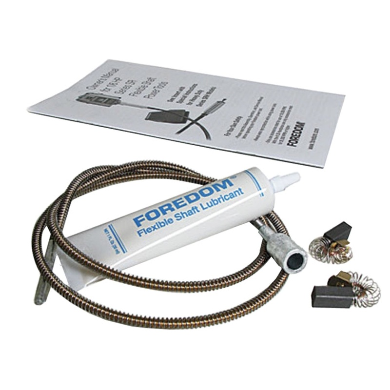 Foredom’s MSMK-10 model kit for the SR series models includes an inner shaft, an operation manual, a pair of motor brushes, and a 1 ounce tube of flex shaft lubrication grease.