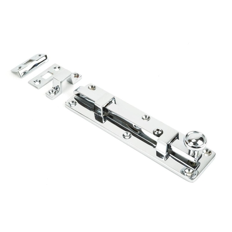 From The Anvil - Polished Chrome 6" Universal BoltManufacturer: From The AnvilSKU: 33099Finish: Polished ChromeType: BoltsRange: UniversalProduct Size Info: Fixing Plate: 150mm x 40mm x 4mmReceiver Plate: 40mm x 15mm x 2mmReceiver Bridge: 43mm x 10mm x 4mm