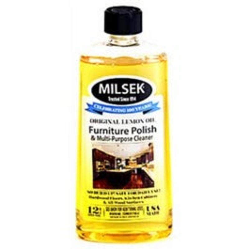 Milsek, 12 oz, lemon scented, oil furniture polish & multi-purpose cleaner, use on all wood surfaces including cabinets & hardwood/laminate floors, removes soap film from glass shower doors, removes heat rings & water rings.