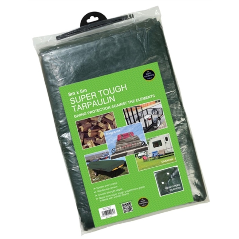 This super tough tarpaulin is made from cross laminated polyethylene grade material with welded seams. The tarpaulin gives protection against the elements. Great for use over logs, trailers, roof racks, boats and caravans. The tarpaulin has reinforced corn