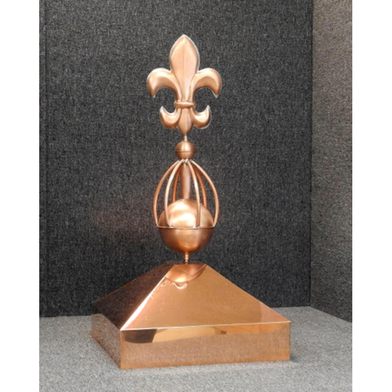 Square Gazebo Crown Cap with Sphere Fleur de Lis Finial Transform your gazebo into a stunning focal point with this Square Gazebo Crown Cap with Sphere Fleur de Lis Finial. Handcrafted in the USA and made from heavy-duty 24 gauge roofing copper, this piece