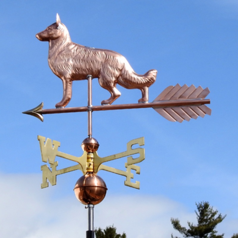 German Shepherd Weathervane - Handmade in USA Elevate your outdoor space with our stunning Handmade German Shepherd Weathervane, a true testament to American craftsmanship. Crafted from durable copper, this exquisite weathervane is designed to withstand th