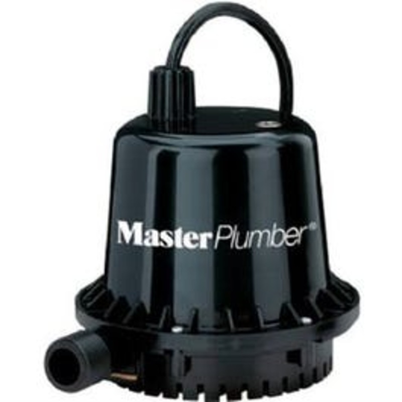 Master Plumber, 1/10 HP, Thermoplastic Submersible Utility Pump, 6' Power Cord, 3/4" Garden Hose Threaded Discharge, Draws down to 3/8", Excellent For Draining Basins, Aquariums, Hot Tubs, Cisterns & Flooded Areas, Optimum Corrosion Resistance, Easy To Use