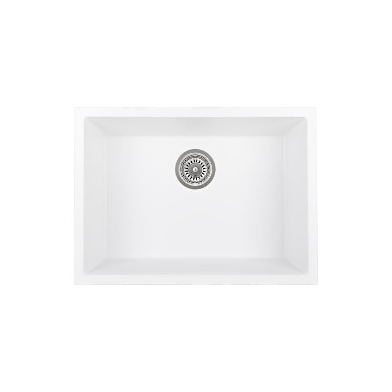 Granite Sink Single Bowl 450 x 450 - Matt WhiteSingle Bowl;GraniteDrop in and Under mount SinkSize:450x 450 x240 mmBowl:400*400*220mmMaterials: 80% quartz stone & 20% acrylic resin*Basket waste includedLife time Replacement Warranty