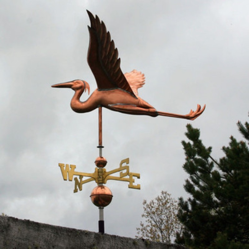 Heron Weathervane - Made in USA Elevate your outdoor space with our stunning handmade copper heron weathervane, a true testament to American craftsmanship. Designed to capture the grace of a heron in flight, this medium-sized weathervane not only serves as