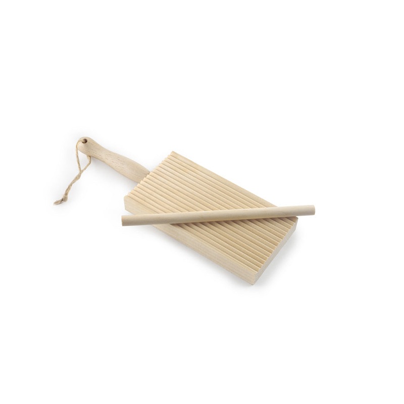 The board will allow you to work the fresh pasta quickly and easily getting perfect shapes. Set includes the gnocchi board and rolling pin.