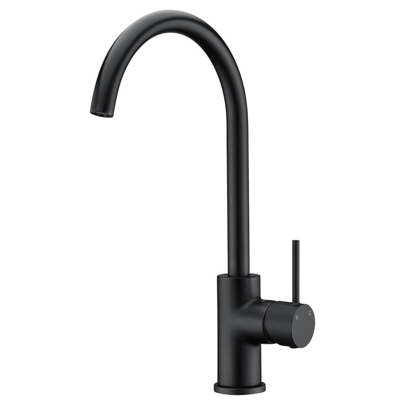 Ikon Hali Gooseneck Kitchen Sink Mixer - Matt BlackHALI Sink MixerSolid brass construction with black finish;European designed; Pin LeverKerox 25mm cartridgeGermany Neoperl Concealed aerator;High rise 360 degree swivel spoutMatt Black ; Brass5 star 6L/MinW