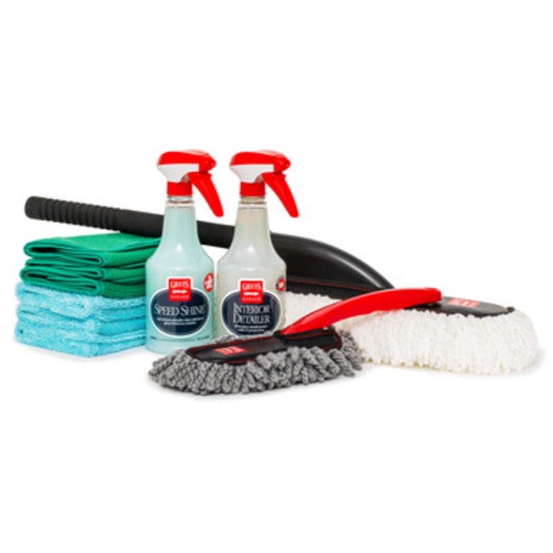 Say bye to car dust both in and out with this dual-purpose dust-busting kit! Ergonomic Microfiber Car Duster & Mini Duster for quick dusting action Dual Weave Interior Towels & Interior Detailer remove dust and fingerprints PFM Edgeless Detailing Towels &