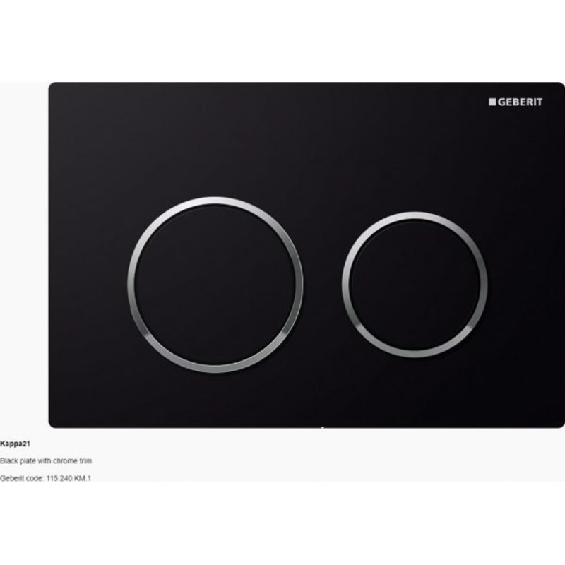 In Wall Toilet Dual Flush Button Plate Geberit Kappa21 - Black With Chrome TrimWith a rich history of innovative thinking, Geberit has grown to be a market leader throughout the world. Incorporating Swiss know-how and luxury into its advanced range of hidd