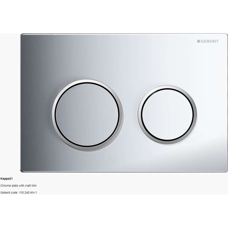 In Wall Toilet Dual Flush Button Plate Geberit Kappa21 - Chrome With Matt TrimWith a rich history of innovative thinking, Geberit has grown to be a market leader throughout the world. Incorporating Swiss know-how and luxury into its advanced range of hidde