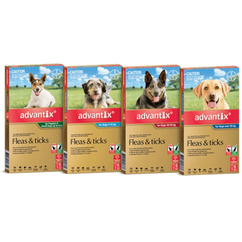 Advantix for dogs kills fleas and ticks on contact, meaning they dont have to bite your dog to be affected by the active ingredients. Advantix also repels ticks, mosquitoes, sandflies and stable flies. Available as a simple water-resistant^ spot-on treatment for dogs of all sizes and puppies from seven weeks of age, Advantix is the simple solution to keep your pet safe for life.