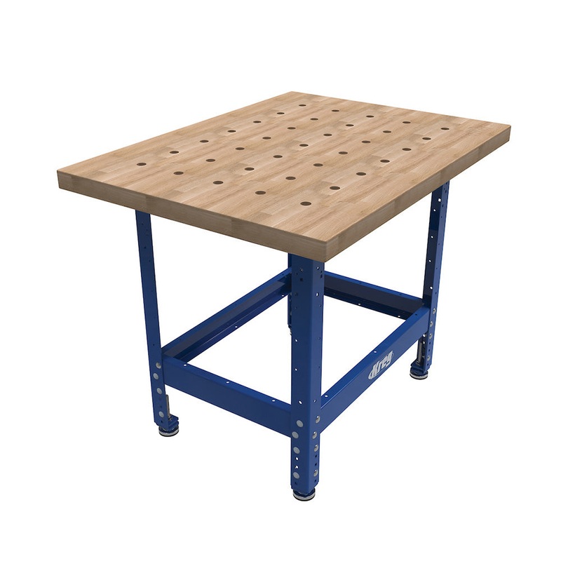 Get organized and create a DIY workspace with the Kreg Universal Bench with Hardwood Top. This complete, turnkey workbench features a flat, stable, and durable hardwood butcher block top with protective coating for easy cleanup. Precision-cut dog holes add increased clamping capabilities. Adjustable legs provide versatility to meet you where you work.