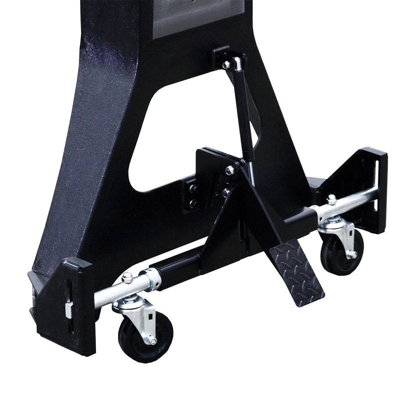 Complete Deluxe Wheel System with Dual gas struts. Lathe sits on all 4 soft pads when in working mode. 4 Swiveling Casters provides easy maneuverability. Requires no drilling. Easy Install.