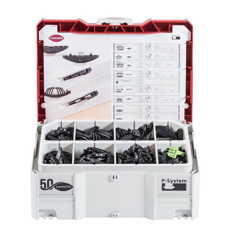 P-System Connector Assortment for theLamello Zeta P2.Includes:(80) Clamex P-14(60) Clamex P Medius(80) Tenso P-14 plus pre-load clips(20) Bisco P-14Tenso P-10/P-14 Preload ToolSystainer T-Loc box with divider