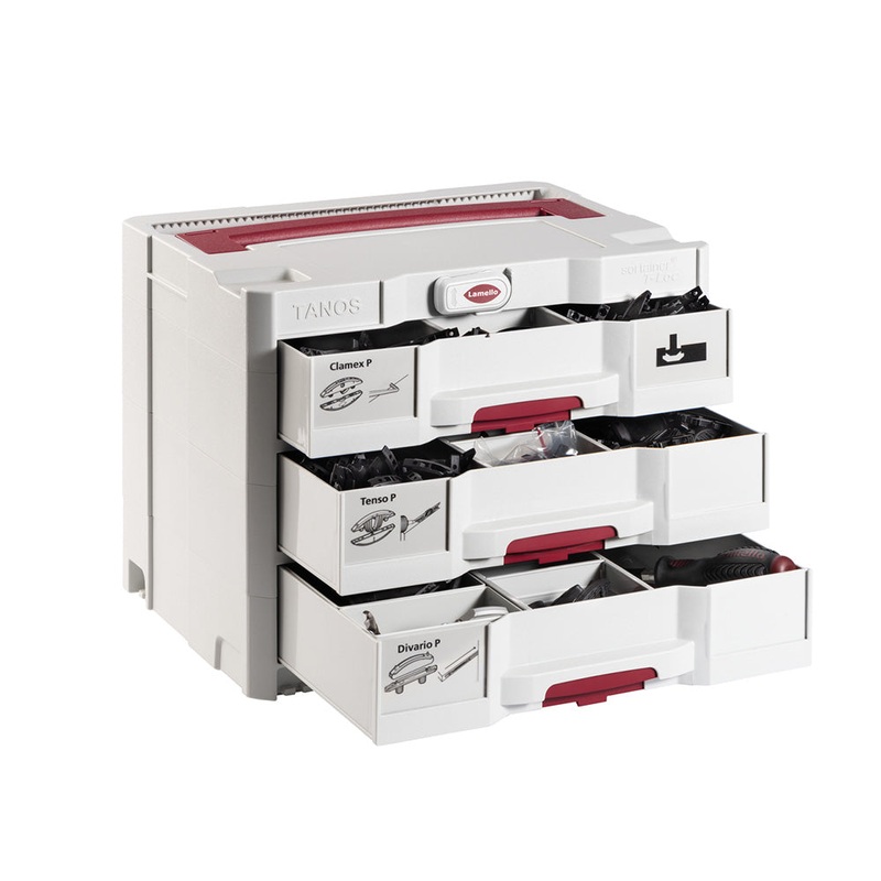 For use with the Lamello Zeta P2.Contents:(120) Clamex P-14(30) Clamex P-14 Flexus(30) Clamex P-10(80) Tenso P-14 plus pre-load clips(30) Tenso P-10 plus pre-load clips(20) Bisco P-14(80) Divario P-18Divario installation tool, drill bit with depth gauge, p