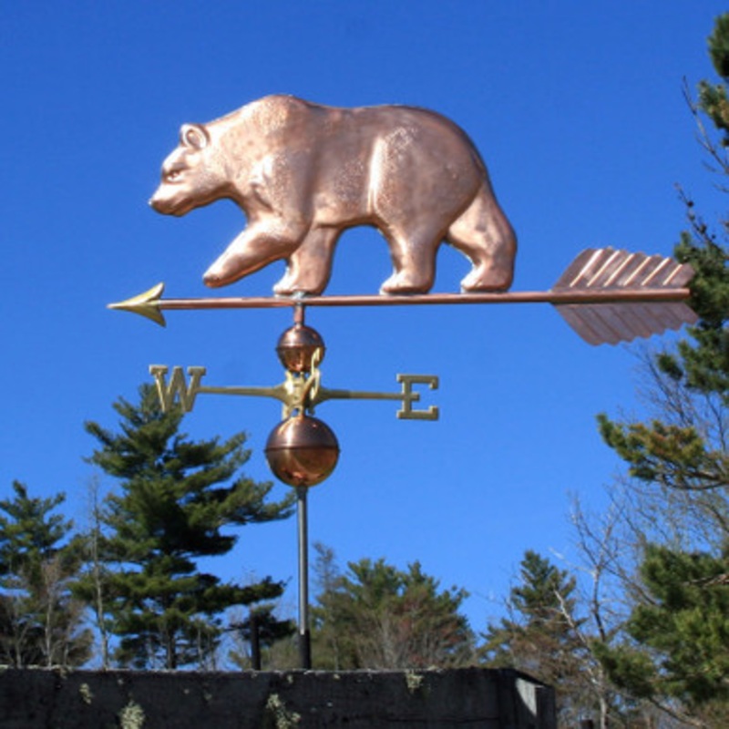 Large Bear Weathervane Made in USA Elevate your outdoor space with our magnificent large bear weathervane, a stunning testament to American craftsmanship and artistry. Crafted from heavy-duty copper, this 3D weathervane not only serves as a reliable guide