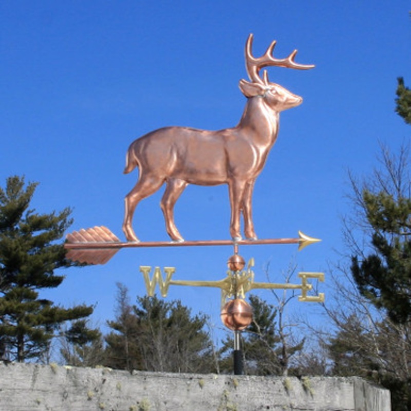 Deer Weathervane Made in USA Elevate your outdoor space with our exquisite large standing deer weathervane, a stunning blend of artistry and functionality that embodies the spirit of American craftsmanship. Crafted from high-quality copper, this 3D weather