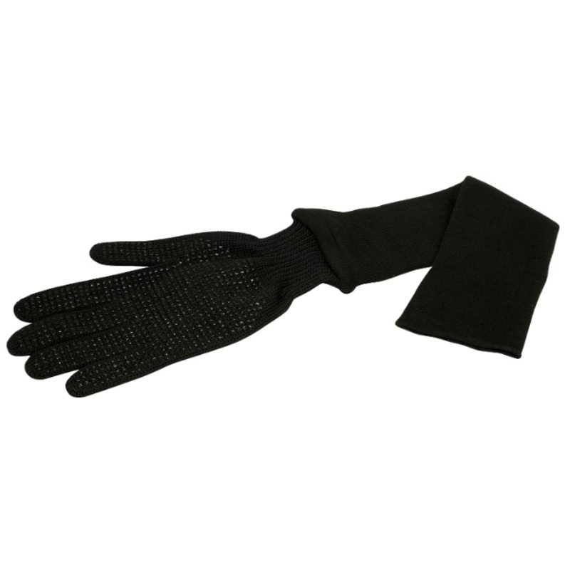 The heat resistant Kevlar material protects hands and arms from hot surfaces. This enables work on hot engines and exhaust systems without waiting. Works on both right and left hands. The glove portion is coated with a vinyl tread for greater gripping power. Extends to 24″. Washable.