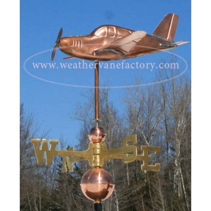 Low Wing Airplane Weathervane Made in USA Soar above the ordinary with our Low Wing Airplane Weathervane, a stunning blend of artistry and functionality crafted for aviation enthusiasts and dreamers alike. This 3D copper weathervane is not just a decorativ